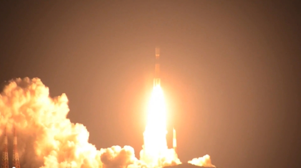 とても眩いオレンジ色の光を放ちながら、轟音とともに宇宙へ向かっていきます!