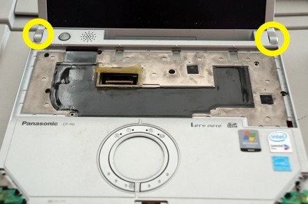 図8 黄色い丸のネジを外す。すると上のカバーがまるごと外れる。