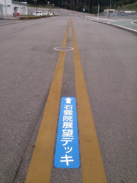 さ、お腹いっぱいになったし帰ろう。と思ったのですが、駐車場へ向かう途中にこんな看板が。なんだこれ?石雲院展望デッキ?真っ直ぐ進めとな。